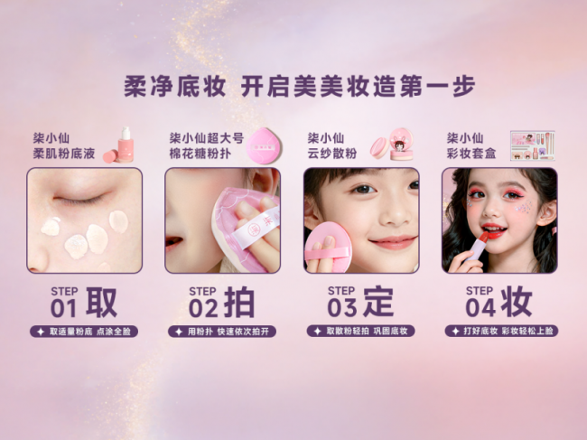 随着国潮文化的兴起,儿童妆容也迎来了审美升级。在2026 CiE美妆创新展上,柒小仙摒弃了传统的“粉红公主风”,