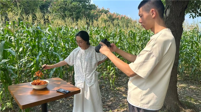 浙江军创园、趣多多乐园、钱塘绿岛,一个个本地特色文旅综合体电商搜索度逐渐上升,通过店铺直播、达人合作,仅浙江军创园线上曝光量就超2000万次。同时,园区深化产教融合,与浙江经济职业技术学院开展校企合作,依托河庄本地“三农”AI模型打造数字化矩阵账号,累计发布河庄乡村风貌、农特产品、文旅资源相关视频250条,全网曝光量超300万,实现了专业人才培养与乡村发展的双向赋能,让数字技术真正扎根乡土、服务乡村。