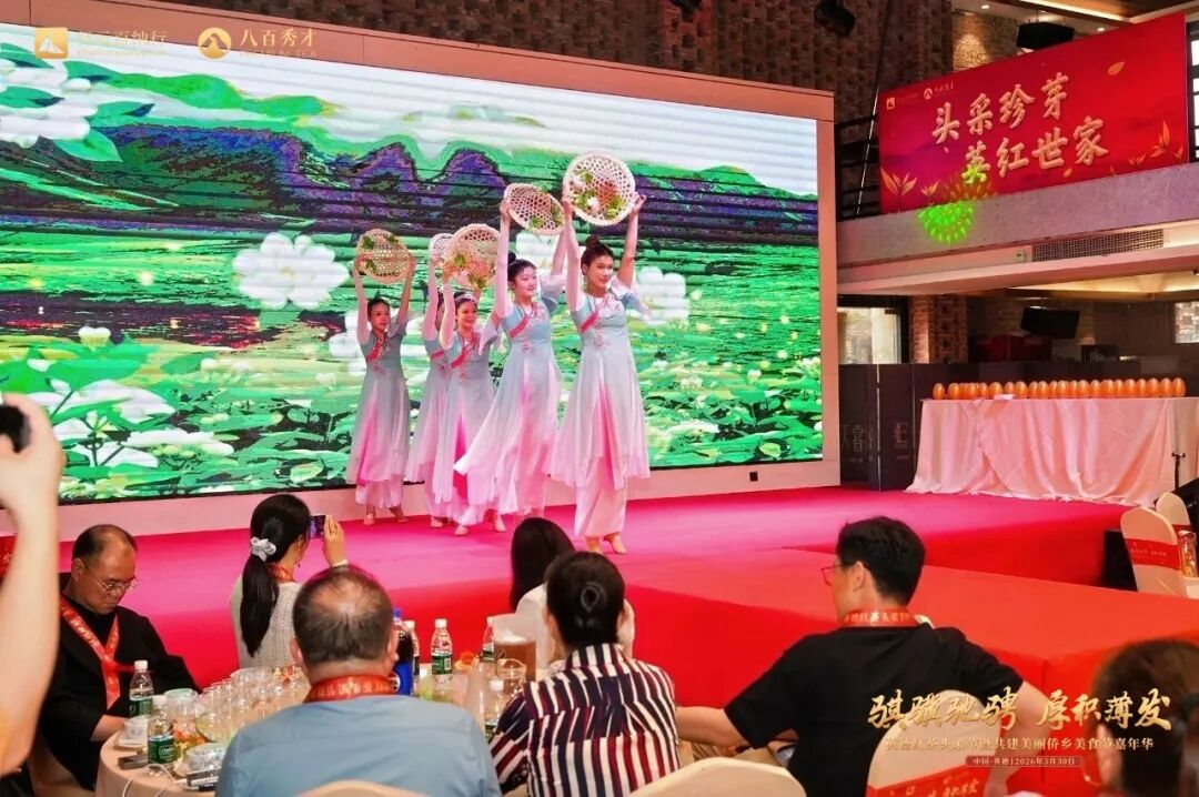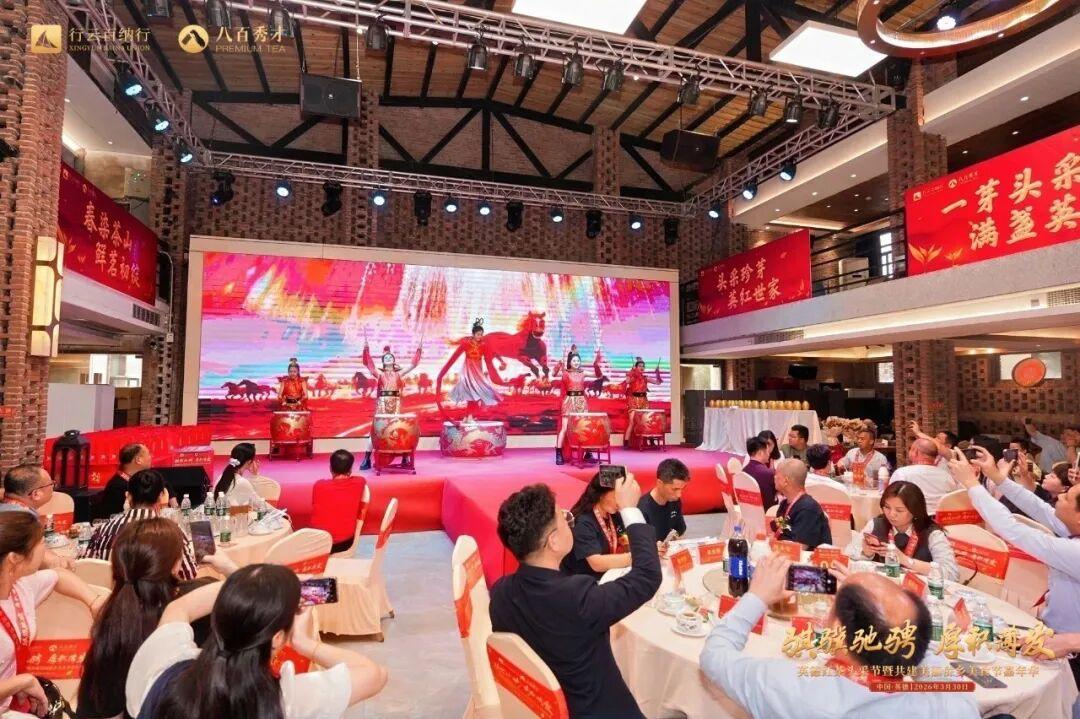 下午16时,主盛典正式拉开帷幕。激昂鼓舞点燃现场氛围,灵动采茶舞尽显茶乡风情,行云百纳行与八百秀才联合宣传视频精彩展播,生动展现深耕英德红茶产业的初心与积淀。