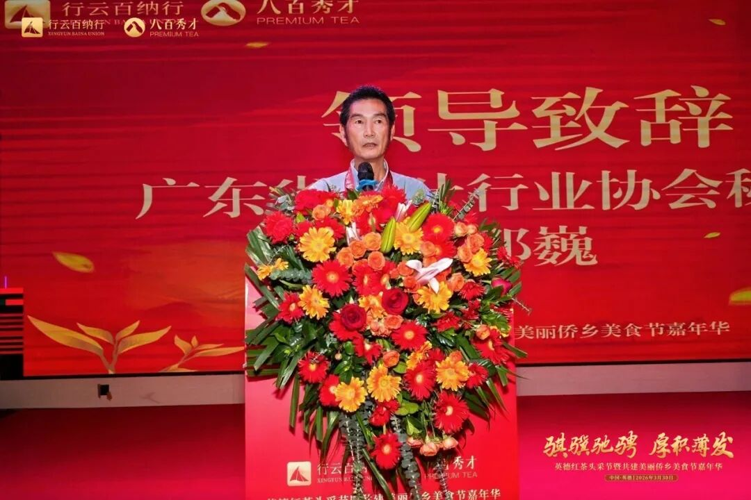 副总裁赵雄首先代表公司,向莅临现场的各位领导、嘉宾及合作伙伴致以最诚挚的欢迎与感谢。他表示,英德红茶已实现百亿产值、品牌价值全国领先,企业扎根黄陂华侨茶场,将以文化为根、科技为引擎,深化产学研合作,坚持人才兴茶、联农带农,未来持续做强品种、品质与品牌,打造侨乡茶文化窗口,与各界携手让英德红茶香飘更远,并祝愿活动圆满成功。