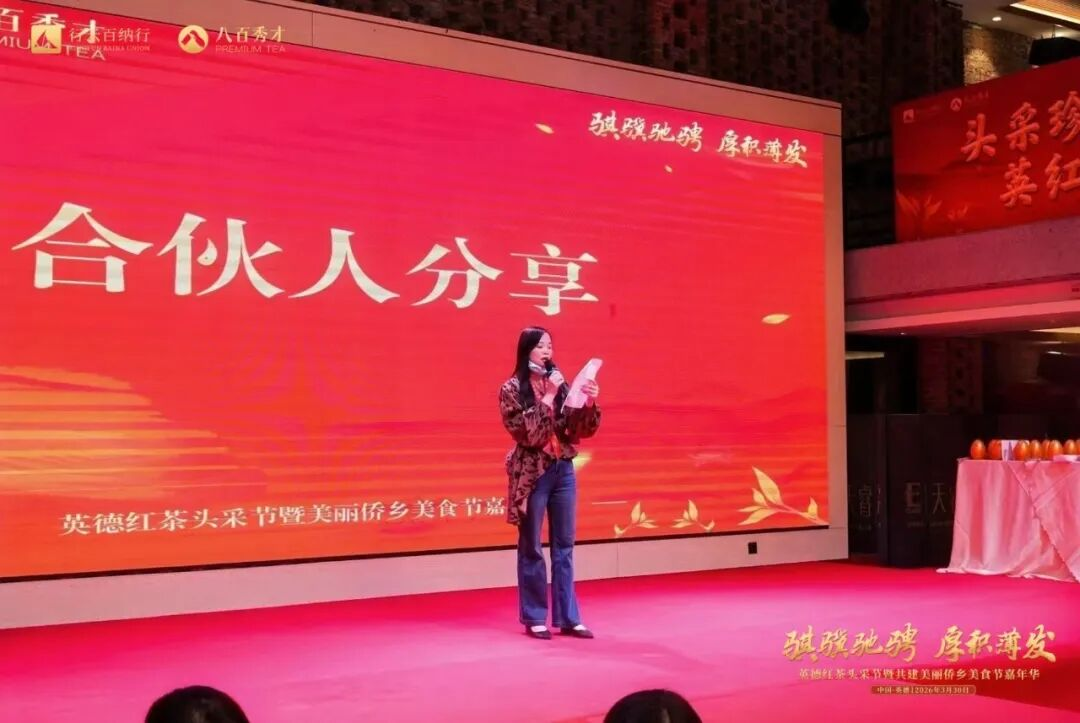 本次活动以 “骐骥驰骋 厚积薄发” 为主题,融春茶头采、侨乡美食、品牌发布、伙伴共庆于一体,汇聚茶界专家、侨界代表、八百秀才全国合伙人、经销商伙伴及广大茶友共赴盛会,沉浸式体验英德红茶魅力,共话品牌发展新篇,共启合作共赢新程。