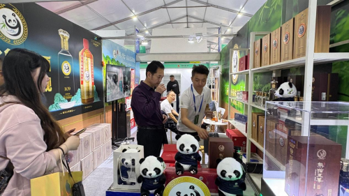 走进展馆,山水熊猫的展位设计兼具质感与巧思,吸引了众多参会者驻足。品牌巧妙运用具有全球认知度的“熊猫”符号,营造出亲切而富有吸引力的展示空间。其主打产品之一的熊猫至尊酒,瓶身设计融汇古典与现代审美,体现了品牌对产品细节的考究。恩施市副市长等嘉宾曾莅临展区参观,与品牌方进行了深入交流。